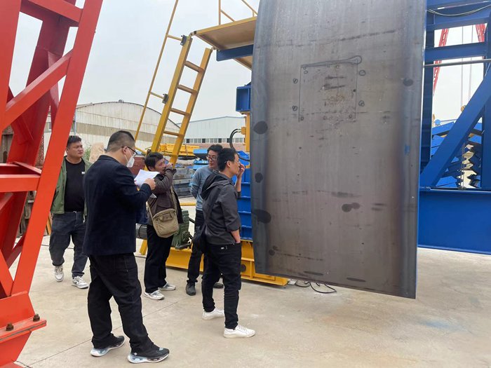 2023年4月13日,中鐵六局集團(tuán)有限公司沈陽地鐵一號線1標(biāo)項(xiàng)目經(jīng)理部檢查驗(yàn)收專家組蒞臨我廠,對訂購我廠生產(chǎn)的二襯臺(tái)車進(jìn)行檢查測量驗(yàn)收。在為期一天的驗(yàn)收工作中,通過聽取現(xiàn)場匯報(bào),實(shí)地測量,調(diào)試、繪圖3D模擬,對我廠的二襯臺(tái)車進(jìn)行了細(xì)致的檢查驗(yàn)收。